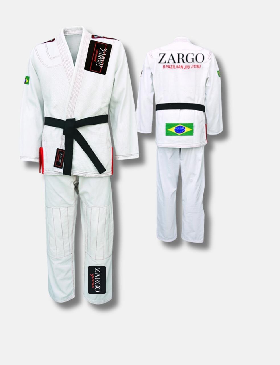 • Jacket: Traditional BJJ cut with reinforced stress points for grappling (Brazilian flags patch detail).